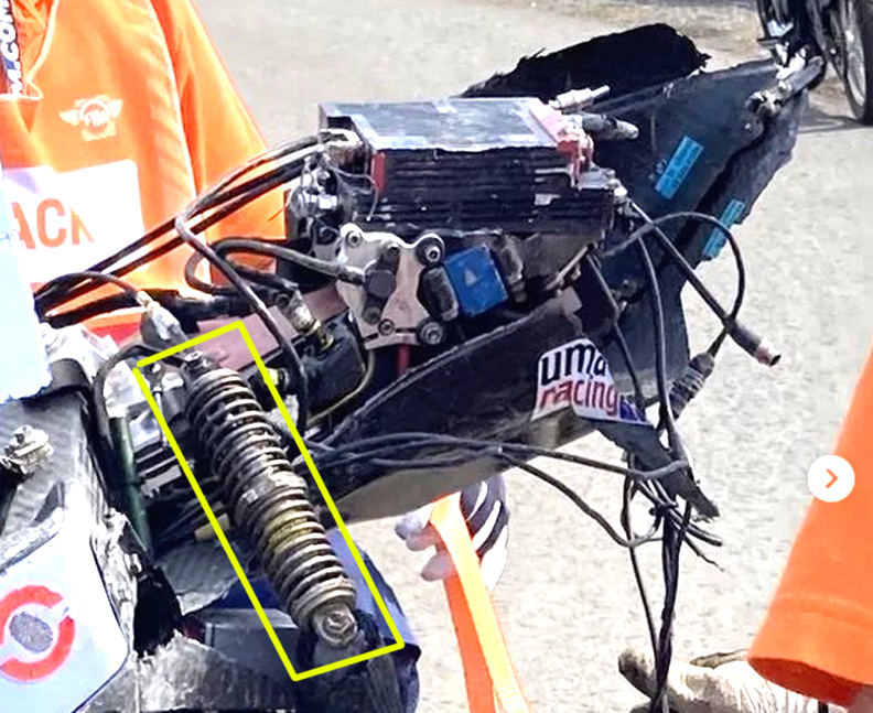 Il agit comme un poids mobile compensant les mouvements du châssis, rendant la moto plus stable à haute vitesse et dans les changements rapides de direction. Combiné avec le holeshot device et l’aérodynamique, il permet à Ducati d’exploiter chaque centimètre de piste avec plus de contrôle et moins de perte de vitesse.